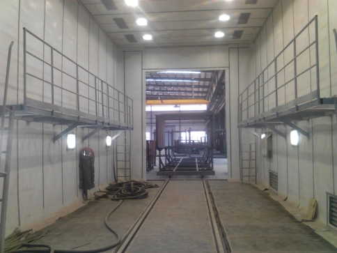 • 整個(gè)項(xiàng)目是對(duì)輕軌軌道等工件進(jìn)行噴砂、噴漆、烤漆及空氣除塵(濾筒式)、廢氣凈化處理(活性炭吸附+催化燃燒系統(tǒng)),在確保噴涂質(zhì)量及效率的同時(shí)注重環(huán)境保護(hù),實(shí)現(xiàn)人與自然和諧發(fā)展;涂裝生產(chǎn)線PLC控制,自動(dòng)化、智能化程度高!